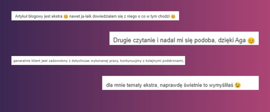 - Zachowuję spójność z tonem komunikacji Twojej marki.